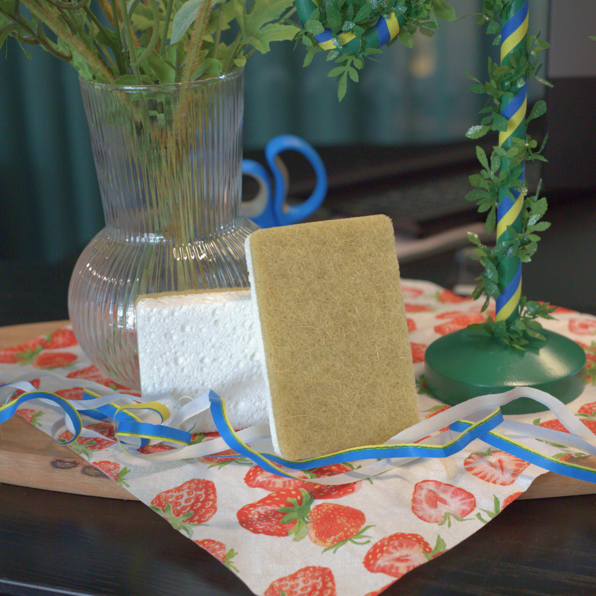 Miljøvenlige svampe lavet af naturlig cellulose og kokosfiber – helt uden plastik.